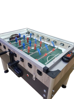 Ofis tipi full langırt ürünümüz gövde olarak 25 mm kalınlığında suntalem malzemeden imal edilmiştir. Ürünün gövde rengi çift renklidir ve renkler stok durumuna göre değişiklik gösterebilir. Masamızın kolları 18 mm çapında 2 mm et kalınlığında çelik çekme krom kaplamalı borudur. Bu borunun üzerine kaliteli oyuncu bebekleri plastik enjeksiyon yöntemiyle basılmaktadır. Masa kollarımız teleskopik koldur. Ürünümüzün üstü topun dışarı kontrolsüzce gitmesini önlemek amacıyla 4 mm kalınlığında tamperli cam kullanılarak kapatılmıştır. Masamızın saha zemini camsız yada isteğe göre camlı olarak yapılabilmektedir. Ayaklar özel alüminyum profildir ve krikoludur (Masa yüksekliği ve dengesini ayarlamak amacıyla). Oyun sahası led aydınlatmalıdır. Jetonla yada parayla çalışmayan free model makinadır. Dijital skor göstergesi ve 4 büyük takımın marşlı tezahurat full langırt masamıza ayrı bir renk ve heyacan katmaktadır.