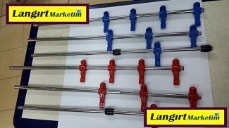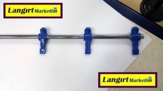 Üretimini yaptığımız langırt masalarının tüm yedek parçaları stoklu olarak elimizde mevcuttur. Bu parça çeşitlerinden bir tanesi de langırt kollarıdır. Firmamızda üç model langırt kolu mevcuttur. Şapkalı langırt kolu modeli piyasamızda en sık rastladığımız türdür. Langırt kolumuz 18 mm çelik çekme krom kaplamalı boru üzerine ; abs plastikten imal edilmiş oyuncu bebeklerinin enjeksiyonda basılmasıyla yapılmıştır. Langırt kol borusunun uzunluğu 85 cm dir. Oyuncu bebeklerinin renkleri kırmızı ve mavi renktir. Bu modelimizde oyuncu dizilişi 3 4 3 sistemindedir.