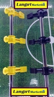 Üretimini yaptığımız langırt masalarının tüm yedek parçaları stoklu olarak elimizde mevcuttur. Bu parça çeşitlerinden bir tanesi de langırt kollarıdır. Firmamızda üç model langırt kolu mecuttur. Tornado langırt masası kolu modeli özel olarak yaptığımız bir modeldir. Langırt kolumuz 18 mm çelik çekme krom kaplamalı boru üzerine ; abs plastikten imal edilmiş oyuncu bebeklerinin enjeksiyonda basılmasıyla yapılmıştır. Langırt kol borusunun uzunluğu 85 cm dir. Oyuncu bebeklerinin renkleri sarı ve siyah renktir. Bu modelimizde oyuncu dizilişi 3 4 3 sistemindedir.