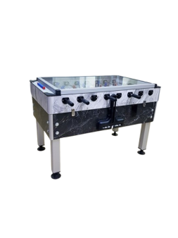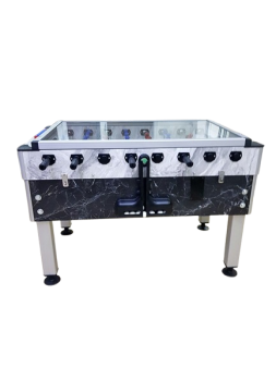 Top dönüşümlü ofis langırt masası ürünümüz gövde olarak 25 mm kalınlığında suntalem malzemeden imal edilmiştir. Masamızın kolları 18 mm çapında 2 mm et kalınlığında çelik çekme krom kaplamalı borudur. Bu borunun üzerine kaliteli plastikten oyuncu bebekleri plastik enjeksiyon yöntemiyle basılmaktadır. Masa kollarımız teleskopik koldur. Ürünümüzün üstü topun dışarı kontrolsüzce gitmesini önlemek amacıyla 4 mm kalınlığında tamperli cam kullanılarak kapatılmıştır. Ayaklar özel alüminyum profildir ve krikoludur (Masa yüksekliği ve dengesini ayarlamak amacıyla). Sayı boncuklu ev ofis tipi free langırt masasıdır.